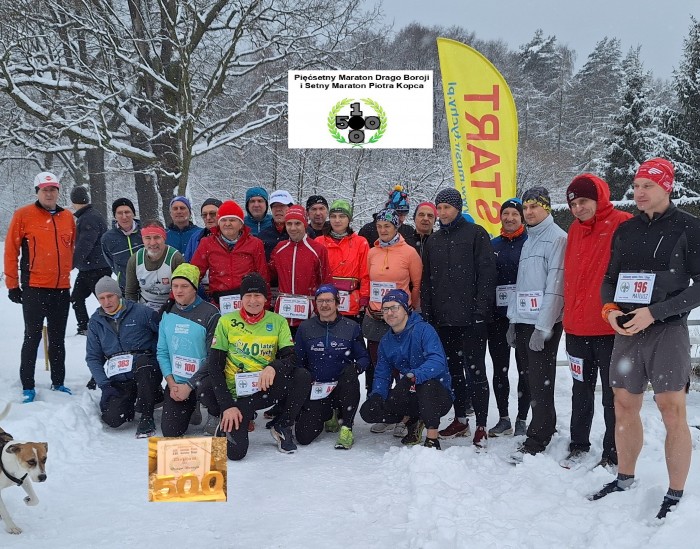 Piotr jako 100-ny maratończyk, Drago jako 500-ny maratończyk i jeszcze kilkoro śmiałków, którzy podjęli wyzwanie 42,195 kilometrów na ośnieżonej i oblodzonej trasie, w temperaturze poniżej zera, co nie jest czymś neutralnym, ale wyzwaniem, takim zadanym.